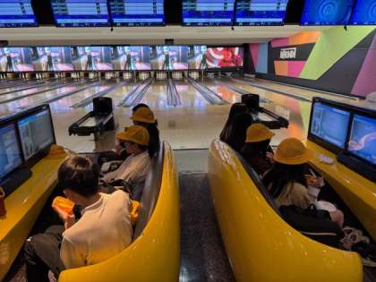 場所をボウリング場に移し、昼食タイムです。いっぱい遊んでお腹ペコペコです。