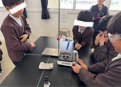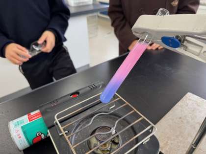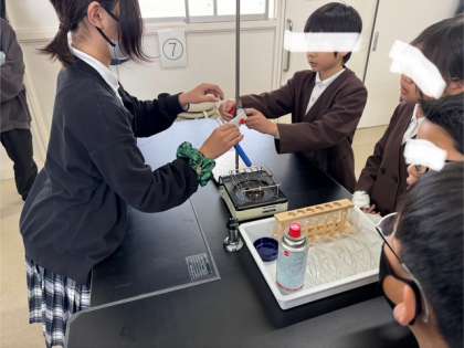 水面近くを熱したら、その部分が温められ、徐々に下に向かって温まっていく様子が見られました。