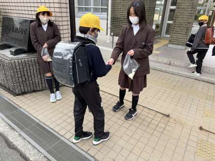運営委員会の児童が毎朝、正門のところであいさつの啓発をしてくれます。