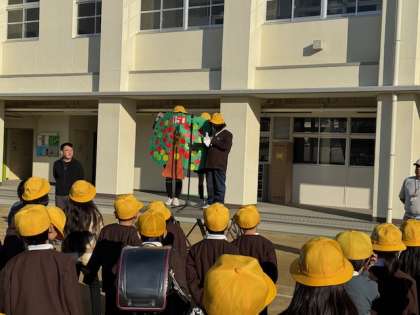 今日は全校朝会で委員会の児童から結果発表がありました。