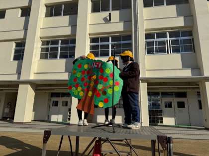 ちなみに、100パーセント達成した学級は金色のリンゴが実りました。