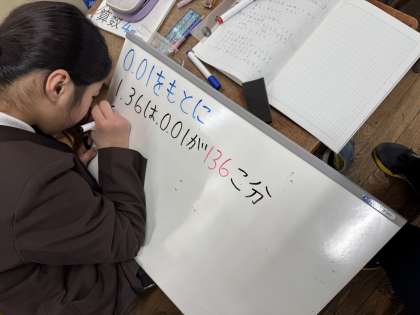 友だちと意見交流した後、まなボードを用いてみんなの前で発表しました。