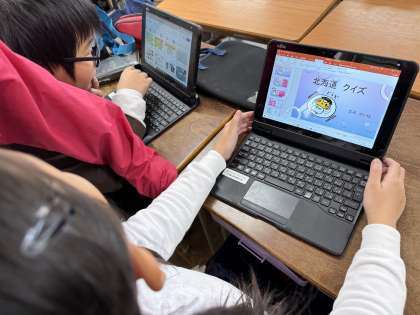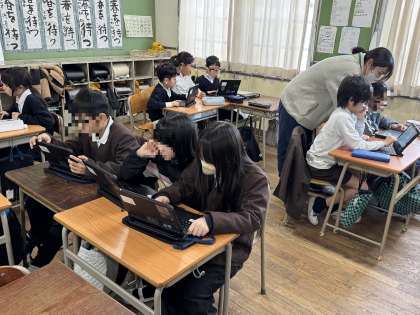 4年1組でも同じくクイズづくりでした。グループで話し合って、楽しく作成している様子でした。