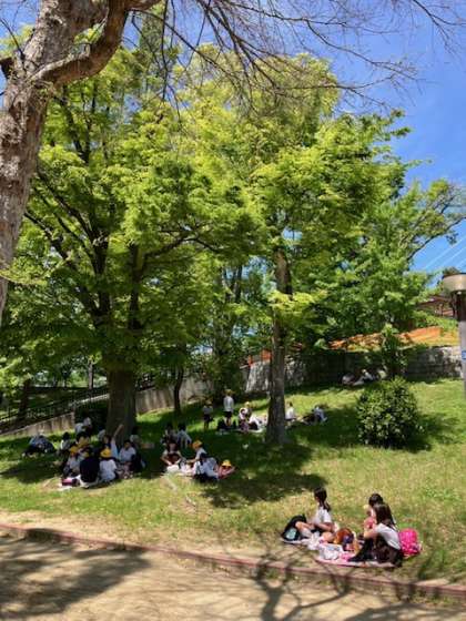 天保山公園でお弁当を食べました。おやつのあとは公園で遊びます。