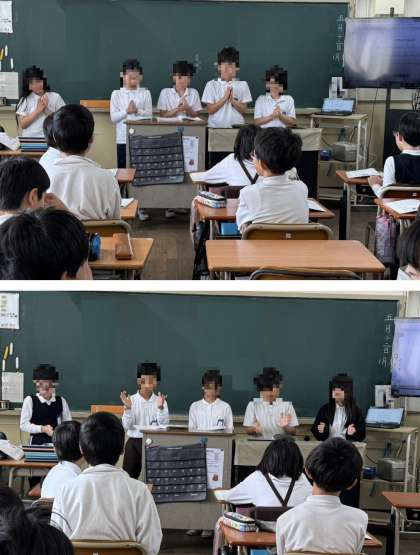 グループごとに前に出て発表していました。