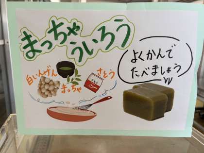 まっ茶ういろうは、白いんげん、さとう、まっ茶で作られています。おいしくいただきました。(上新粉も入っているそうです。)