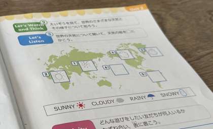 C−NETの先生と一緒に学習しました。ネイティブな発音を聞き取って、教科書に書き込んでいました。