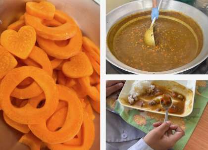 ラッキーにんじんが入ったカレーライスです。運良く入っていた人、おめでとうございます。