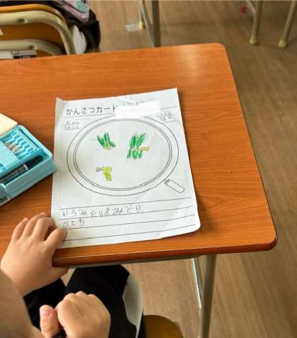 アサガオの観察をしました。いつの間にか、芽を出していたんですね。