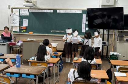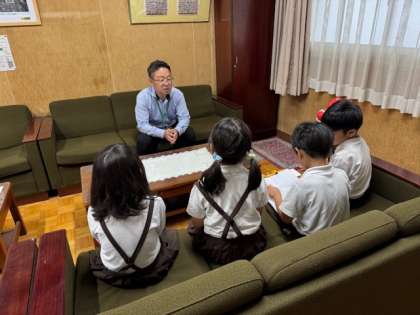 働く人に話を聞こうの学習で、職員室にインタビューに来ました。