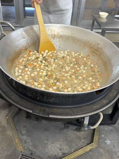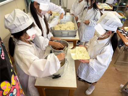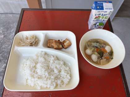 今日の献立は中華!八宝菜は野菜がたくさん入っていました。1年生、給食を上手に入れていました。
