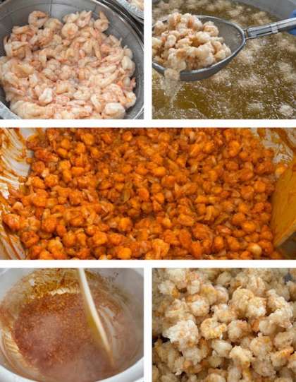タレも一から作り、揚げたえびに絡めています。