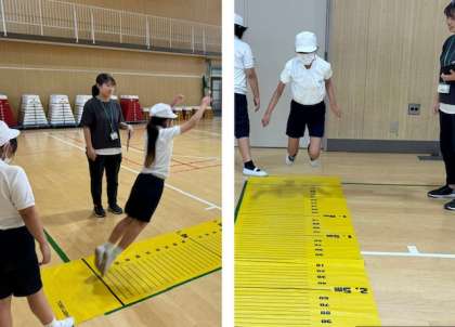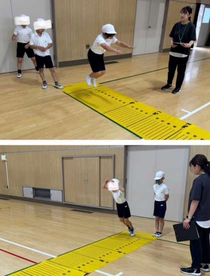 立ち幅跳びは、しっかり腕を振ってジャンプしていました。