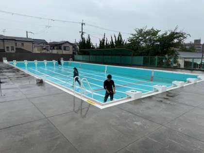 午前中、雨の中業者さんがプールの清掃をしてくれました。もうすぐプール開きです。気持ちよく学習できるよう、準備していきます。
