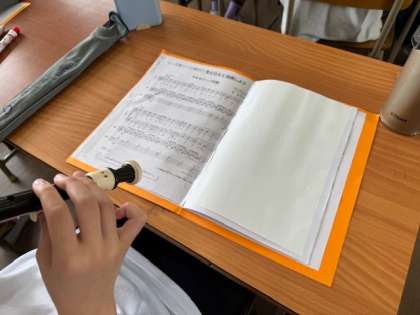 リコーダー奏「マルセリーノの歌」の練習に励んでいました。高音のメロディが、せつなく感じる曲です。1音1音丁寧に奏でていました。