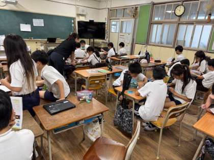 先日の焼却工場見学のまとめをしました。グループごとにミニ新聞を作っていました。