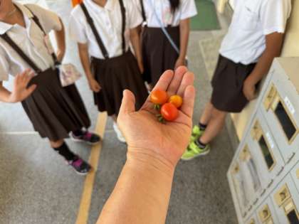2年生の子どもたちからミニトマトをプレゼントしていただきました。食べると、みずみずしくて、あまいトマトでした。おいしくいただきました。ありがとうございます。