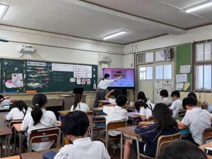 今日は4年1組で栄養指導がありました。「魚について知ろう」という題材で学習しました。