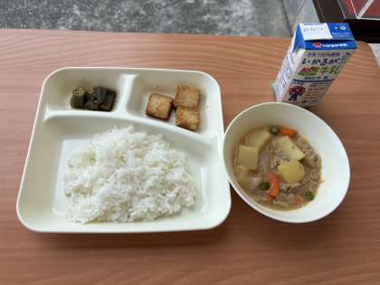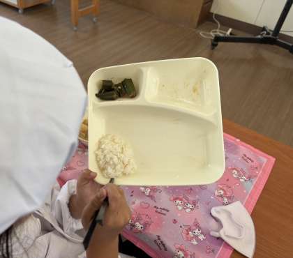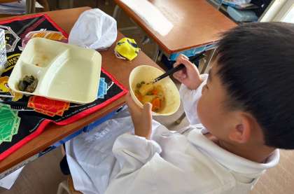 1年生はとても集中して、いい姿勢で食べていました。「ごはんも綺麗に集めたよ」と見せてくれました。