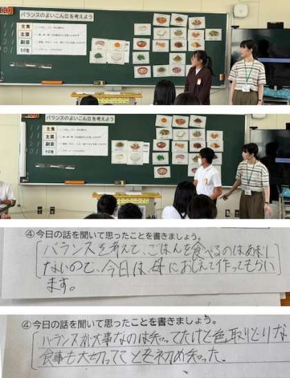 学習してからは、バランス良くメニューを考えていました。また、自分たちの生活を振り返ってやってみたい事や、バランス以外にもいろどりなどにも目を向ける事などしっかりと学習しました。