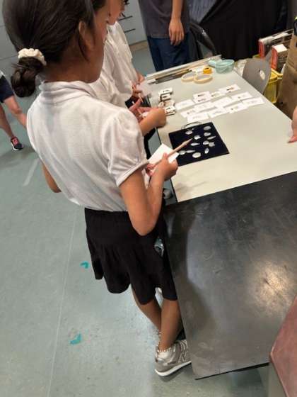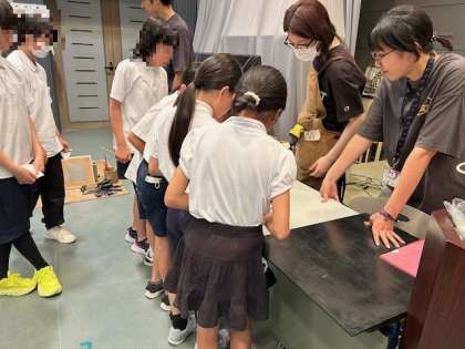 金工体験の様子です。金属を加工し、ペンダントトップを作っていきます。自分のお気に入りの形を選んでデザインし、加工していきます。