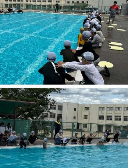 ?安全確保につながる運動の一環として5年生で毎年実施している着衣水泳に取り組みました。