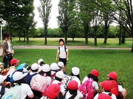 見学の後、実行委員の児童が、午後からの予定について説明しました。