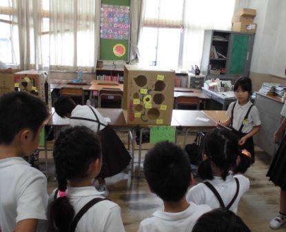 大中小の穴に向かってピンポン玉を投げ、ポイントをきそうゲームです。