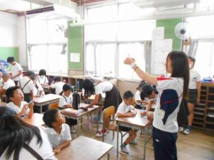 先生や上級生に教わりながら、低学年の児童も、心を込めて折鶴を折りました。