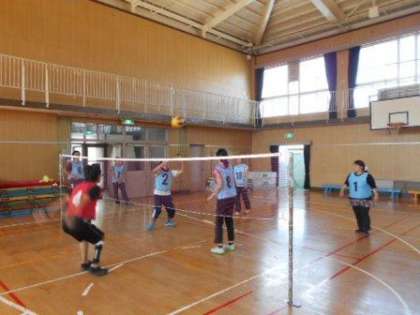 一人で行うパスの練習、サーブの練習、何人かでパスを回す練習、サーブを受ける練習と進み、最後に2チームに分かれてゲームを行いました。