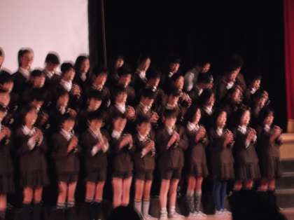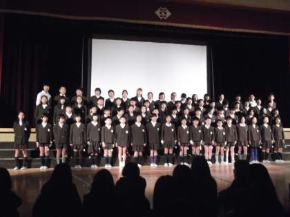 6年生は、英語で群読「桃太郎」、英語の歌、リコーダーを発表しました。