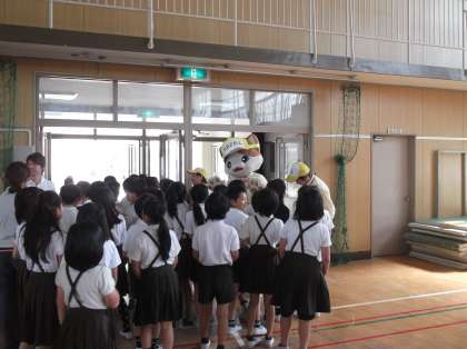 6月12日(月)の児童朝会は、平野CAT隊のみなさんにお越しいただいて行いました。