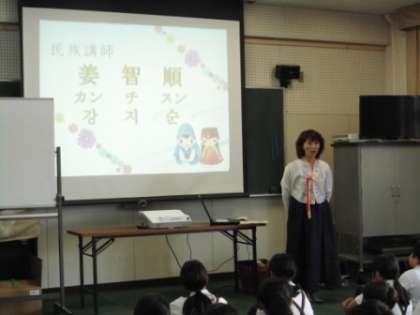 6月13日(火)、ソンセンニムにお越しいただき、5年生と6年生が韓国・朝鮮の文化や歴史について教わりました。