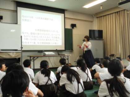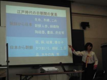 6年生は、日朝の貿易の歴史や、現在大阪市にはどれくらいの数の在日韓国・朝鮮人の方が暮らしているのか、現在2国間で問題になっていることにはどのようなことがあるのかなどについて、ていねいな説明を受けました。