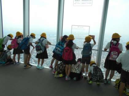 6月16日(金)、3年生はあべのハルカス最上階の展望台に上り、大阪市の地理的特徴についての学習をしました。