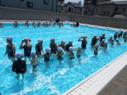 授業が終わるころには1年生もみんなプールに慣れ、これからの学習が楽しみだな、という期待で一杯の表情を見せていました。