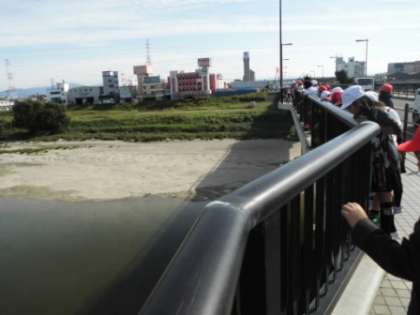 大和川や東除川の様子を、橋の上と河川敷から観察しました。