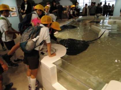 サメやエイの体にさわることができるコーナーでは、「サメのはだはザラザラや!」「エイはすべすべや!」と、貴重な体験に歓声があがっていました。