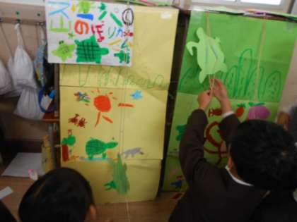 楽しい動きをするように工夫して作られたおもちゃに、1年生は大喜びでした。