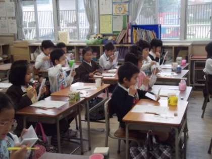 歯科衛生士の先生から、2年生が歯磨き指導を受けました。