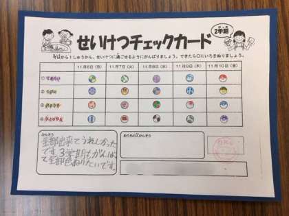 ここで、せいけつチェックカードの児童の感想や保護者の感想をいくつか紹介します。