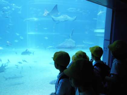 ふれあいコーナーでは、エイやサメを触りました。普段はなかなか触れる機会のない生き物なので、子どもたちは大喜びでした。