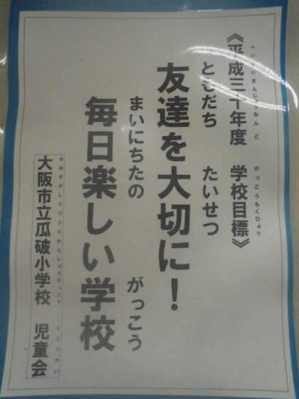 「友達を大切に! 毎日楽しい学校」です。