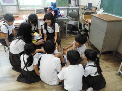 秋には、たてわり班で全校遠足に行きます。