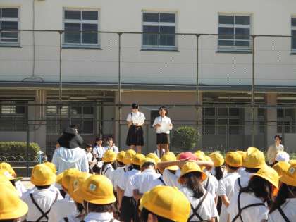 保健委員会の児童が、「せいけつチェックカード」の説明や集計発表をしました。