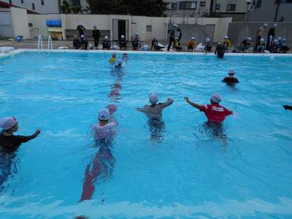 衣服を身に着けたまま水の中に入ると、衣服が水を吸って重くなり、動きにくくなることを実体験しました。