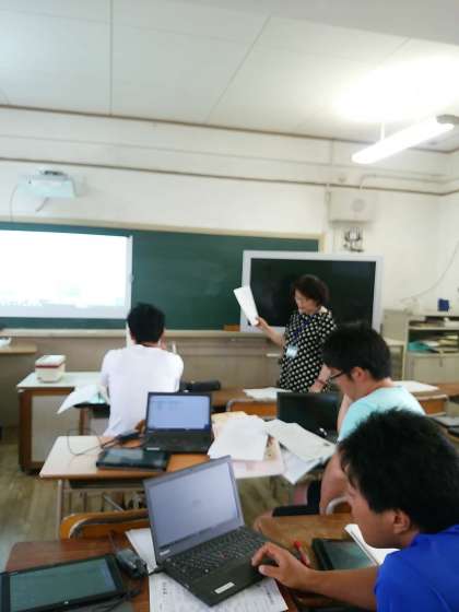 タブレットを使い、それぞれの学年の二学期以降の学習内容の授業作りや教材研究を行いました。