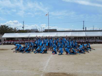 真っ青な大空に「はっぴ」がよく映え、きびきびした動きとソーラン節の元気な掛け声が印象的でした。