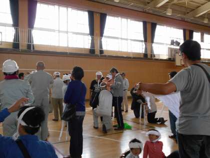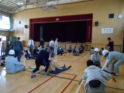 参加された方々は熱心に訓練体験に臨んでおられました。小学生もお家の方と参加していました。