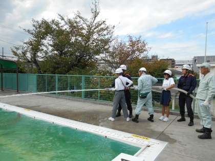 訓練は3班に分かれて行われ、平野消防署員の皆さんの説明と指導のもと